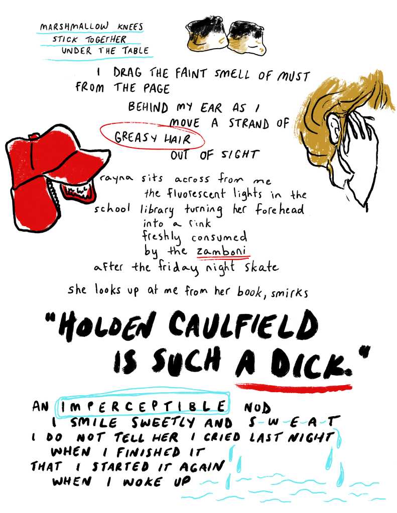 Picking up the worn spiral notebook resting beside him, he notes down that this is the third time he’s heard a mother scold her toddler for running too quickly – and done nothing to actively stop him. He also notes the bright neon green of her bathing suit, that she clearly hasn’t washed her hair (possibly in days), and that the toddler seems especially hyperactive. In the margins he scribbles, “Sugar? Bad mother? Childhood trauma? ADHD? Poverty?”