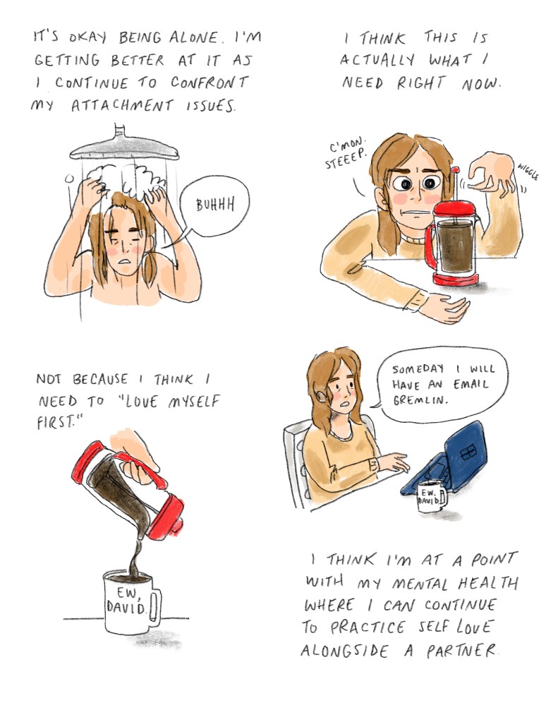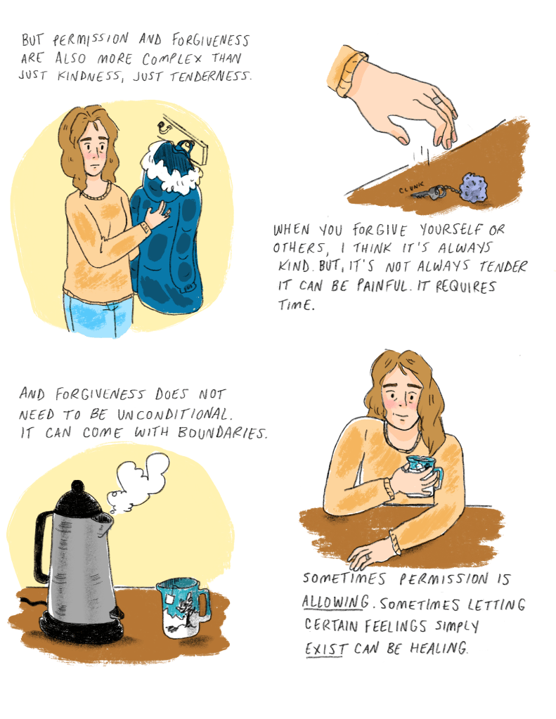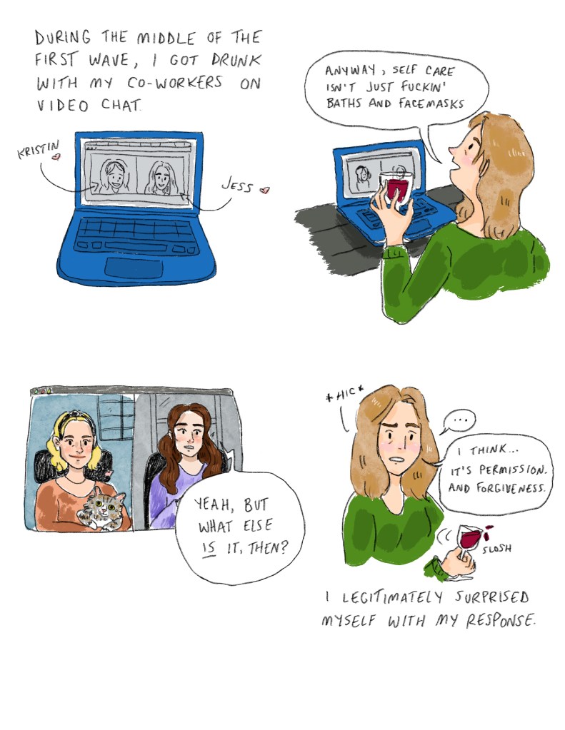 I’ve been rushing between projects, finding things to do that help me remember my limbs. No reading or brain work – tactile things. Painting. Cooking. Cleaning. Yoga. Death makes me want to forget my body, but I resist. I am resisting death, though it does not go away. We only resist death until we can’t anymore. We grow around our grief pockets, creating souls that look like a maze in Pac-Man. Filled with ghosts that will eat us if we let them.